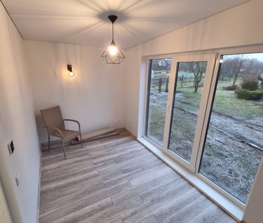 *Vidaus apdaila - dažytas dvigubas gipsas (pasirinktina spalva).