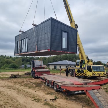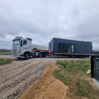 - Negabaritinis transportas iki jūsų sklypo (namuko pervežimas).
