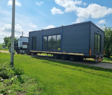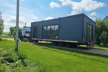 - Negabaritinis transportas iki jūsų sklypo (namuko pervežimas).
