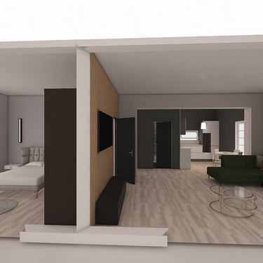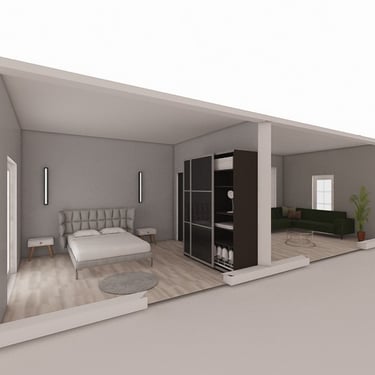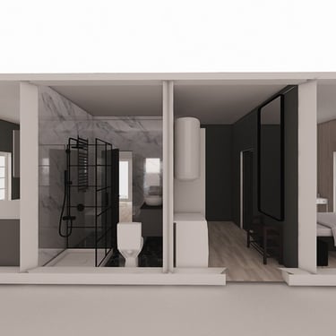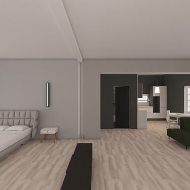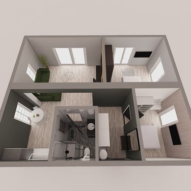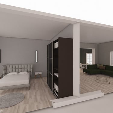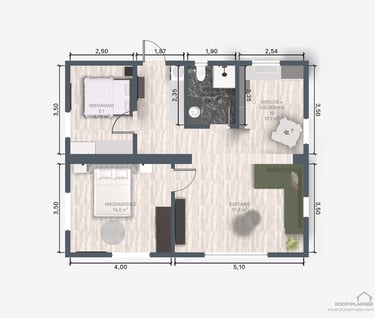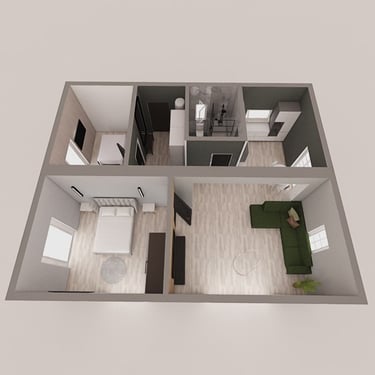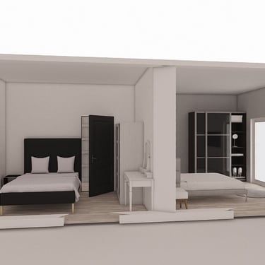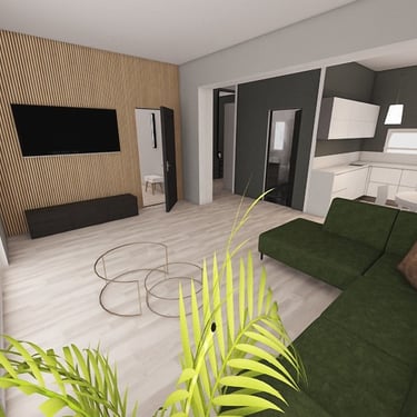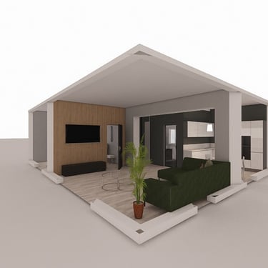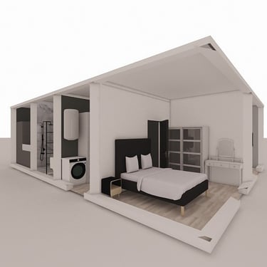 **Išorės apdaila standartinė, vidaus irengimas užsakant su pilna apdaila, analogiškas kaip kituose projektuose !! Apstatymo plotas - 80 kv.m., gyvenamas plotas - 65 kv.m., lubų aukštis - 2.8 m, išorės matmenys - 8,1m x 9,85m. (du moduliai)