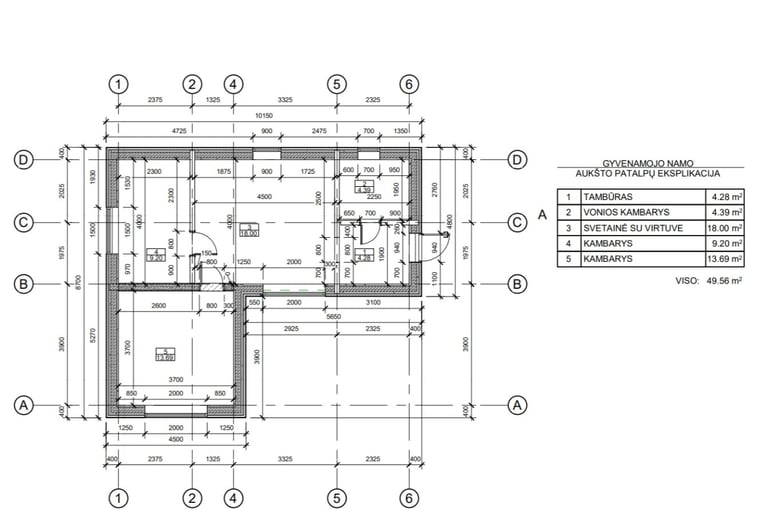 *Vidaus apdaila - dažytas dvigubas gipsas (pasirinktina spalva).